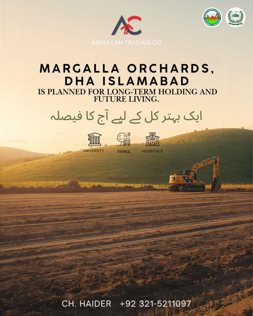 - Nearly 8 minutes from Islamabad Club With residential plots available for future-focused buyers, Margalla Orchards continues to move forward with measured development and planning.