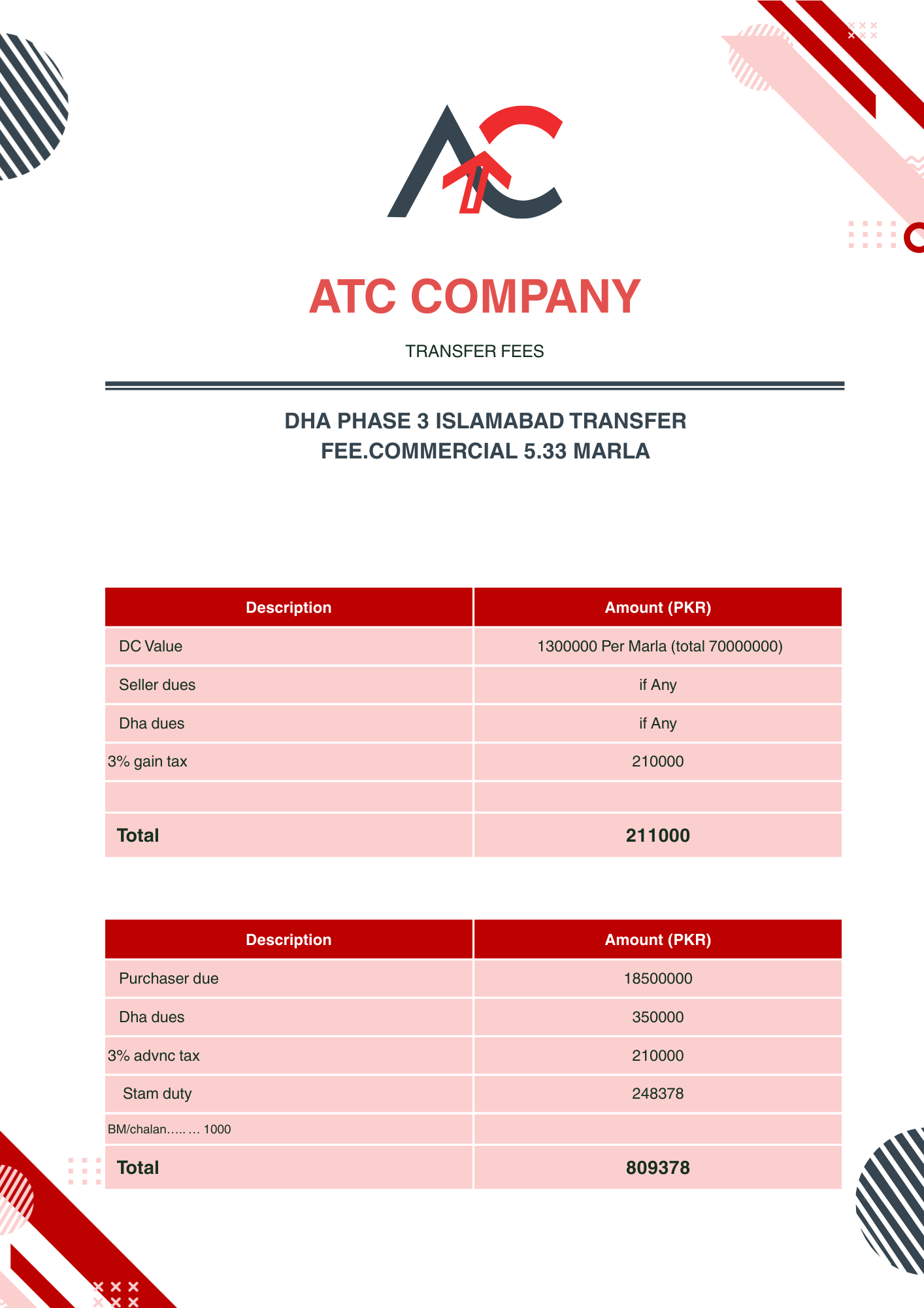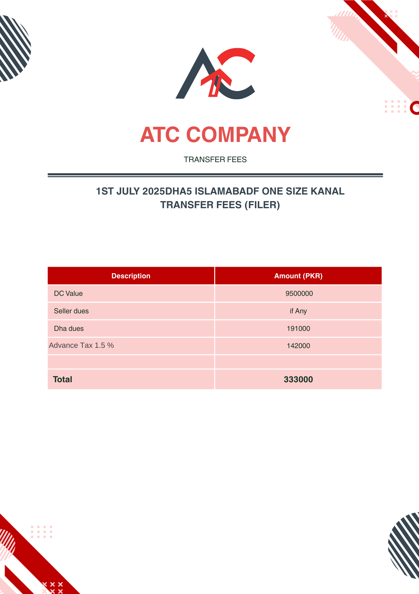 1st July 2025Dha5 IslamabadF One Size Kanal Transfer Fees (Filer)